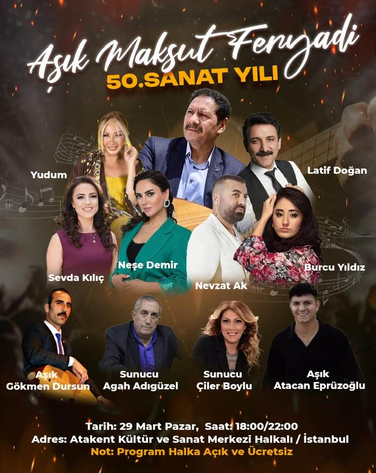 İstanbul’da kültür ve sanat severleri bir araya getirecek özel bir etkinlik düzenleniyor. Aşık Maksut Feryadi’nin sanat hayatının 50. yılı, geniş katılımlı bir programla kutlanacak.